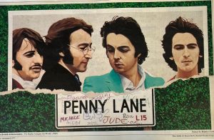 Lot 110 – A Part Set of Four Psychedelic Beatles Posters c.1967, by Roger Avedon, of the Daily Express, each 68cm x 48cm, slightly a.f., together with a printed double page from TV Times, 1977 (5).